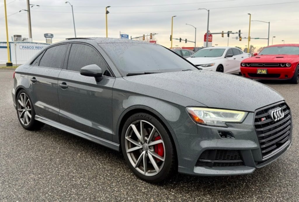 Must See, 3 Month 3,000 Mile Powertrain Warranty On Every Vehicle, S3 2.0T Premium Plus quattro, 4D Sedan, 2.0L 4-Cylinder TFSI, 6-Speed Automatic S tronic, quattro, Nano Gray Metallic, Magma Red w/Leather Seating Surfaces, Air Conditioning, Audi Connect PRIME & PLUS 6 Month Trial, Audi Magnetic Ride, Audi Virtual Cockpit, Black Optic Dynamic Package, Electronic Stability Control, Exterior Parking Camera Rear, Power moonroof, Radio: Audi MMI Navigation Plus w/MMI Touch, Red Brake Calipers, S Sport Package, Technology Package, Wheels: 8.0" x 19" Audi Sport 5-V Spoke Design, 10 Speakers, 4-Wheel Disc Brakes, ABS brakes, Alloy wheels, AM/FM radio: SiriusXM, Audi Beam-Quattro, Audi Guard Premium Textile Floor Mats, Audi Guard Wheel Lock Kit, Auto-dimming Rear-View mirror, Automatic temperature control, Brake assist, Bumpers: body-color, CD player, Compass, Delay-off headlights, Delete Front License Plate Holder, Driver door bin, Driver vanity mirror, Dual front impact airbags, Dual front side impact airbags, Four wheel independent suspension, Front anti-roll bar, Front Bucket Seats, Front Center Armrest, Front dual zone A/C, Front fog lights, Front reading lights, Grocery Hooks, Headlight cleaning, Heated front seats, Heated Front Sport Seats, Homelink - Black, Illuminated entry, Knee airbag, Leather Seating Surfaces, Leather Shift Knob, Leather steering wheel, Low tire pressure warning, Occupant sensing airbag, Outside temperature display, Overhead airbag, Panic alarm, Passenger door bin, Passenger vanity mirror, Power door mirrors, Power driver seat, Power passenger seat, Power steering, Power windows, Radio data system, Rain sensing wipers, Rear anti-roll bar, Rear fog lights, Rear reading lights, Rear seat center armrest, Rear window defroster, Remote keyless entry, Security system, Speed control, Speed-sensing steering, Speed-Sensitive Wipers, Split folding rear seat, Spoiler, Sport steering wheel, Steering wheel mounted audio controls, Tachometer, Telescoping steering wheel, Tilt steering wheel, Traction control, Trip computer, Turn signal indicator mirrors, USB Cables (DISC), Variably intermittent wipers, Wheels: 8.0" x 18" 5-Arm-Dynamic-Design, S3 2.0T Premium Plus quattro, 4D Sedan, 2.0L 4-Cylinder TFSI, 6-Speed Automatic S tronic, quattro, Nano Gray Metallic, Magma Red w/Leather Seating Surfaces, Air Conditioning, Audi Connect PRIME & PLUS 6 Month Trial, Audi Magnetic Ride, Audi Virtual Cockpit, Black Optic Dynamic Package, Electronic Stability Control, Exterior Parking Camera Rear, Power moonroof, Radio: Audi MMI Navigation Plus w/MMI Touch, Red Brake Calipers, S Sport Package, Technology Package, Wheels: 8.0" x 19" Audi Sport 5-V Spoke Design. Recent Arrival!