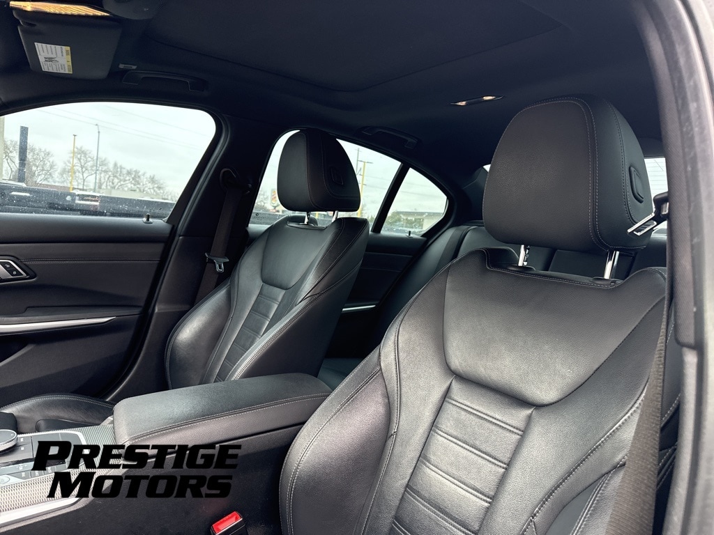 Local Trade-in, Must See, MoonRoof, Clean Carfax, 3 Series M340i xDrive, 3.0L I6, AWD, Active Blind Spot Detection, Active Driving Assistant, Active Driving Assistant Pro, Air Conditioning, Automatic temperature control, Black Mirror Caps, Connected Package Pro, Driving Assistance Package, Driving Assistance Professional Package, Extended Shadowline Trim, Extended Traffic Jam Assistant, Exterior Parking Camera Rear, Front dual zone A/C, Head-Up Display, Heated Front Seats, Heated Steering Wheel, Lane Departure Warning System, Navigation System, Park Distance Control, Power moonroof, Premium Package, Rear air conditioning, Rear window defroster, Shadowline Package, 10 Speakers, 4-Wheel Disc Brakes, ABS brakes, Alloy wheels, AM/FM radio: SiriusXM with 360L, Apple CarPlay & Android Auto Compatibility, Apple CarPlay Compatibility, Auto High-beam Headlights, Auto-dimming door mirrors, Auto-dimming Rear-View mirror, BMW Assist eCall, BMW TeleServices, Brake assist, Bumpers: body-color, Compass, ConnectedDrive Services, Delay-off headlights, Driver door bin, Driver vanity mirror, Dual front impact airbags, Dual front side impact airbags, Electronic Stability Control, Emergency communication system: BMW Assist eCall, Four wheel independent suspension, Front anti-roll bar, Front Bucket Seats, Front Center Armrest, Front reading lights, Fully automatic headlights, Garage door transmitter, Hands-Free Bluetooth & USB Audio Connection, harman/kardon Surround Sound System, Heated door mirrors, Hi-Fi Sound System, Illuminated entry, Knee airbag, Leather Shift Knob, Leather steering wheel, Live Cockpit Pro w/Navi, Low tire pressure warning, Lumbar Support, M Sport Brakes w/Red Calipers, Memory seat, Occupant sensing airbag, Outside temperature display, Overhead airbag, Panic alarm, Passenger door bin, Passenger vanity mirror, Power door mirrors, Power driver seat, Power Front Seats, Power passenger seat, Power steering, Power windows, Radio Control US, Radio data system, Radio: AM/FM Audio System, Rain sensing wipers, Rear anti-roll bar, Rear reading lights, Rear seat center armrest, Remote Engine Start, Remote keyless entry, Security system, SensaTec Upholstery, SiriusXM w/360L, Speed control, Speed-sensing steering, Speed-Sensitive Wipers, Split folding rear seat, Spoiler, Sport Seats, Sport steering wheel, Steering wheel mounted audio controls, Tachometer, Telescoping steering wheel, Tilt steering wheel, Traction control, Trip computer, Turn signal indicator mirrors, Variably intermittent wipers, Wheels: 18" x 7.5" M Double-Spoke (Style 790M), Wheels: 19" x 8" Dble-Spoke Bi-Color (Style 793i), 3 Series M340i xDrive, 3.0L I6, AWD, Active Blind Spot Detection, Active Driving Assistant, Active Driving Assistant Pro, Air Conditioning, Automatic temperature control, Black Mirror Caps, Connected Package Pro, Driving Assistance Package, Driving Assistance Professional Package, Extended Shadowline Trim, Extended Traffic Jam Assistant, Exterior Parking Camera Rear, Front dual zone A/C, Head-Up Display, Heated Front Seats, Heated Steering Wheel, Lane Departure Warning System, Navigation System, Park Distance Control, Power moonroof, Premium Package, Rear air conditioning, Rear window defroster, Shadowline Package. Recent Arrival! Clean CARFAX.