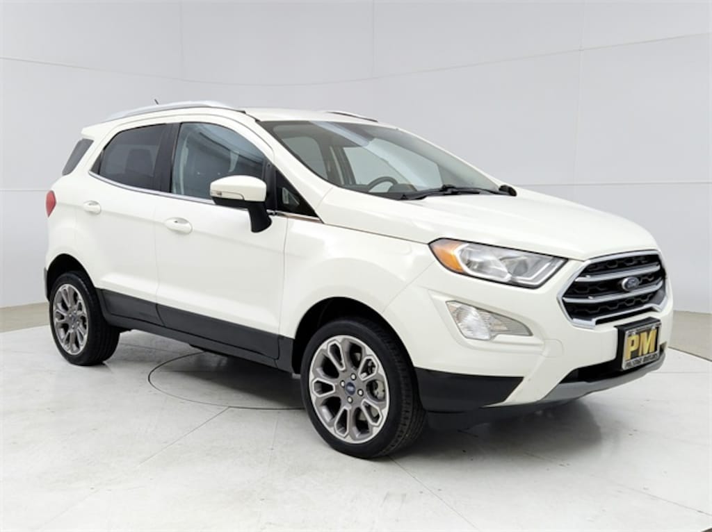 Must see, 3 Month or 3,000 Mile Powertrain Warranty Included, Clean Carfax, EcoSport Titanium, 4WD, Equipment Group 400A, Heated front seats, Navigation System, Power moonroof, 10 Speakers, 3.51 Axle Ratio, 4-Wheel Disc Brakes, ABS brakes, Air Conditioning, Alloy wheels, AM/FM radio: SiriusXM, AppLink/Apple CarPlay and Android Auto, Auto-dimming Rear-View mirror, Automatic temperature control, Brake assist, Bumpers: body-color, Compass, Delay-off headlights, Driver door bin, Driver vanity mirror, Dual front impact airbags, Dual front side impact airbags, Electronic Stability Control, Emergency communication system: SYNC 3 911 Assist, Exterior Parking Camera Rear, Front anti-roll bar, Front Bucket Seats, Front Center Armrest, Front fog lights, Front reading lights, Front wheel independent suspension, Fully automatic headlights, Heated door mirrors, Heated steering wheel, Illuminated entry, Knee airbag, Leather Shift Knob, Leather steering wheel, Low tire pressure warning, Occupant sensing airbag, Outside temperature display, Overhead airbag, Overhead console, Panic alarm, Passenger door bin, Passenger vanity mirror, Perforated Leather-Trimmed Heated Bucket Seats, Power door mirrors, Power driver seat, Power steering, Power windows, Radio data system, Radio: AM/FM Stereo w/MP3 Capable, Rain sensing wipers, Rear anti-roll bar, Rear Parking Sensors, Rear seat center armrest, Rear side impact airbag, Rear window defroster, Rear window wiper, Remote keyless entry, Roof rack: rails only, Security system, SiriusXM Radio, SiriusXM Traffic & Travel Link, Speed control, Speed-sensing steering, Split folding rear seat, Steering wheel mounted audio controls, SYNC 3 Communications & Entertainment System, Tachometer, Telescoping steering wheel, Tilt steering wheel, Traction control, Trip computer, Turn signal indicator mirrors, Variably intermittent wipers, Wheels: 17" Premium Dark Stainless-Painted, EcoSport Titanium, 4WD, Equipment Group 400A, Heated front seats, Navigation System, Power moonroof. Clean CARFAX.