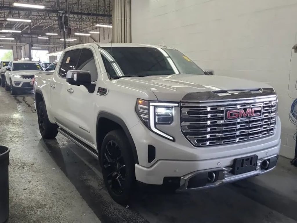 1 Owner Vehicle, Sierra 1500 Denali, 4D Crew Cab, EcoTec3 6.2L V8, 10-Speed Automatic, 4WD, White Frost Tricoat, Black Leather, Denali Reserve Super Package, GMC MultiPro Power Steps, Hitch Guidance, Power Sunroof, Super Cruise, Super Cruise Wrapped Steering Wheel, Technology Package, Trailering Package, Wheels: 22" x 9" Painted Aluminum, 12-Way Power Driver Seat Adjuster w/Lumbar, 12-Way Power Passenger Seat Adjuster w/Lumbar, 120-Volt Bed Mounted Power Outlet, 120-Volt Interior Power Outlet, 170 Amp Alternator, 2 Charge/Data USB Ports Inside Center Console, 2 Type-C Charge-Only Rear USB Ports, 2 USB Ports, 3.23 Rear Axle Ratio, 4-Wheel Disc Brakes, 7 Speakers, ABS brakes, Adaptive suspension, Air Conditioning, Alloy wheels, AM/FM radio: SiriusXM with 360L, Apple CarPlay/Android Auto, Auto High-beam Headlights, Auto-dimming door mirrors, Auto-dimming Rear-View mirror, Auto-Locking Rear Differential, Automatic temperature control, Auxiliary External Transmission Oil Cooler, Bed View Camera, Brake assist, Buckle to Drive, Bumpers: body-color, Chrome Header w/Signature Denali Chrome Grille, Chrome Recovery Hooks, Chrome Wheel To Wheel Assist Steps, Color-Keyed Carpeting Floor Covering, Compass, Deep-Tinted Glass, Delay-off headlights, Denali Premium Suspension w/Adaptive Ride Control, Driver door bin, Driver Memory, Driver vanity mirror, Dual Active Exhaust, Dual front impact airbags, Dual front side impact airbags, Electric Rear-Window Defogger, Electronic Stability Control, Emergency communication system: OnStar and GMC connected services capable, Enhanced Automatic Emergency Braking, Floor-Mounted Center Console, Following Distance Indicator, Forge Perforated Leather Seat Trim, Forward Collision Alert, Front anti-roll bar, Front Bucket Seats, Front Center Armrest, Front dual zone A/C, Front fog lights, Front License Plate Kit, Front Pedestrian Braking, Front Rain-Sensing Wipers, Front reading lights, Front wheel independent suspension, Fully automatic headlights, Garage door transmitter, Genuine wood console insert, Genuine wood dashboard insert, Genuine wood door panel insert, GMC Connected Access Capable, HD Surround Vision, Heated 2nd Row Outboard Seats, Heated door mirrors, Heated Driver & Front Outboard Passenger Seating, Heated front seats, Heated rear seats, Heated steering wheel, Heavy-Duty Air Filter, Hill Descent Control, Hitch View, Illuminated entry, In-Vehicle Trailering System App, Integrated Trailer Brake Controller, IntelliBeam Automatic High Beam On/Off, Keyless Open & Start, Lane Keep Assist w/Lane Departure Warning, LED Cargo Area Lighting, Low tire pressure warning, Memory seat, Multicolor 15" Diagonal Head-Up Display, Navigation System, Occupant sensing airbag, OnStar & GMC Connected Services Capable, Outside temperature display, Overhead airbag, Overhead console, Panic alarm, Passenger door bin, Passenger vanity mirror, Perimeter Lighting, Power Door Locks, Power door mirrors, Power driver seat, Power Front Passenger Windows w/Express Up/Down, Power Front Windows w/Driver Express Up/Down, Power passenger seat, Power Rake & Telescoping Steering Column, Power Rear Windows w/Express Down, Power Sliding Rear Window w/Rear Defogger, Power steering, Power windows, Preferred Equipment Group 5SA, Premium audio system: GMC Infotainment System, Premium Bose 7-Speaker Sound System, Push Button Start, Radio data system, Radio: Premium GMC Infotainment Audio System, Rain sensing wipers, Rear Camera Mirror, Rear Cross Traffic Braking, Rear Pedestrian Detection, Rear reading lights, Rear seat center armrest, Rear step bumper, Rear Wheelhouse Liners, Rear window defroster, Remote keyless entry, Remote Vehicle Starter System, Safety Alert Seat, Security system, SiriusXM w/360L, Speed control, Speed-sensing steering, Split folding rear seat, Spray-On Pickup Bedliner w/Denali Logo, Steering Wheel Audio Controls, Steering wheel mounted audio controls, Tachometer, Telescoping steering wheel, Theft Deterrent System (Unauthori