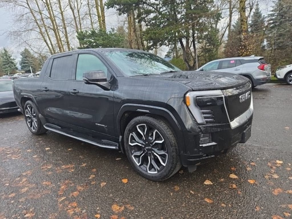 Sierra EV Denali Max Range, 4D Crew Cab, Electric, AWD, Max Range Battery Pack, Preferred Equipment Group 5SD, Wheels: 24" x 9.0" Aluminum, 11.63 Axle Ratio, 4-Wheel Disc Brakes, 7 Speakers, 8-Way Power Driver Seat w/4-Way Power Lumbar, 8-Way Power Passenger Seat w/4-Way Power Lumbar, ABS brakes, Adaptive suspension, Air Conditioning, Alloy wheels, AM/FM radio: SiriusXM with 360L, Auto High-beam Headlights, Auto-dimming Rear-View mirror, Auto-leveling suspension, Automatic temperature control, Brake assist, Delay-off headlights, Driver & Front Passenger Ventilated Seats, Driver door bin, Driver vanity mirror, Dual front impact airbags, Dual front side impact airbags, Dual Level Charge Cord, Electronic Stability Control, Emergency communication system: OnStar, Four wheel independent suspension, Front & Rear Adaptive Air Ride Suspension, Front anti-roll bar, Front Bucket Seats, Front Bucket Seats w/Center Console, Front Center Armrest w/Storage, Front dual zone A/C, Front fog lights, Front License Plate Kit, Front reading lights, Fully automatic headlights, Garage door transmitter, Genuine wood console insert, Genuine wood dashboard insert, Heads-Up Display, Heated door mirrors, Heated Front Driver & Passenger Seats, Heated front seats, Heated rear seats, Heated steering wheel, Low tire pressure warning, Memory seat, Navigation System, Occupant sensing airbag, Outside temperature display, Overhead airbag, Overhead console, Panic alarm, Passenger door bin, Passenger vanity mirror, Power door mirrors, Power driver seat, Power passenger seat, Power steering, Power windows, Premium 7-Speaker Bose Sound System, Premium audio system: Premium GMC Infotainment System, Premium Leather Alternative Seating Surfaces, Radio data system, Radio: 16.8" Diagonal Premium GMC Infotainment Sys, Rain sensing wipers, Rear fog lights, Rear reading lights, Rear seat center armrest, Rear step bumper, Rear window defroster, Remote keyless entry, Security system, SiriusXM w/360L Trial Subscription, Speed control, Speed-sensing steering, Split folding rear seat, Sport steering wheel, Steering wheel memory, Steering wheel mounted audio controls, Telescoping steering wheel, Tilt steering wheel, Traction control, Trip computer, Variably intermittent wipers, Ventilated front seats, Sierra EV Denali Max Range, 4D Crew Cab, Electric, AWD, Max Range Battery Pack, Preferred Equipment Group 5SD, Wheels: 24" x 9.0" Aluminum. Recent Arrival! CARFAX One-Owner. Clean CARFAX.