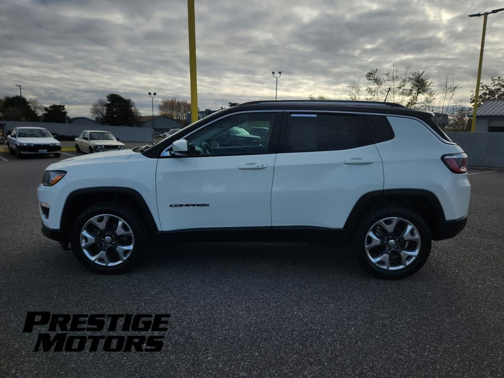 Local Trade-in, Must See, Compass Limited, 4D Sport Utility, 2.4L I4, 4WD, White Clearcoat, Black Leather, Quick Order Package 27G, 3.73 Axle Ratio, 4-Wheel Disc Brakes, 6 Speakers, ABS brakes, Air Conditioning, Alloy wheels, AM/FM radio: SiriusXM, Anti-whiplash front head restraints, Apple CarPlay/Android Auto, Auto-dimming Rear-View mirror, Automatic temperature control, Brake assist, Bumpers: body-color, Compass, Delay-off headlights, Driver door bin, Driver vanity mirror, Dual front impact airbags, Dual front side impact airbags, Electronic Stability Control, Four wheel independent suspension, Front anti-roll bar, Front Bucket Seats, Front Center Armrest w/Storage, Front dual zone A/C, Front fog lights, Front reading lights, Fully automatic headlights, Heated door mirrors, Heated front seats, Heated steering wheel, Illuminated entry, Knee airbag, Leather Shift Knob, Leather Trimmed Bucket Seats, Low tire pressure warning, Occupant sensing airbag, Outside temperature display, Overhead airbag, Overhead console, Panic alarm, ParkView Rear Back-Up Camera, Passenger door bin, Passenger vanity mirror, Power door mirrors, Power driver seat, Power steering, Power windows, Radio: Uconnect 4 w/8.4" Display, Rear anti-roll bar, Rear seat center armrest, Rear window defroster, Rear window wiper, Remote keyless entry, Roof rack: rails only, Security system, Speed control, Split folding rear seat, Spoiler, Steering wheel mounted audio controls, Tachometer, Telescoping steering wheel, Tilt steering wheel, Traction control, Trip computer, Turn signal indicator mirrors, Variably intermittent wipers, Wheels: 18" x 7.0" Polished/Gray Pockets Aluminum, Compass Limited, 4D Sport Utility, 2.4L I4, 4WD, White Clearcoat, Black Leather, Quick Order Package 27G.