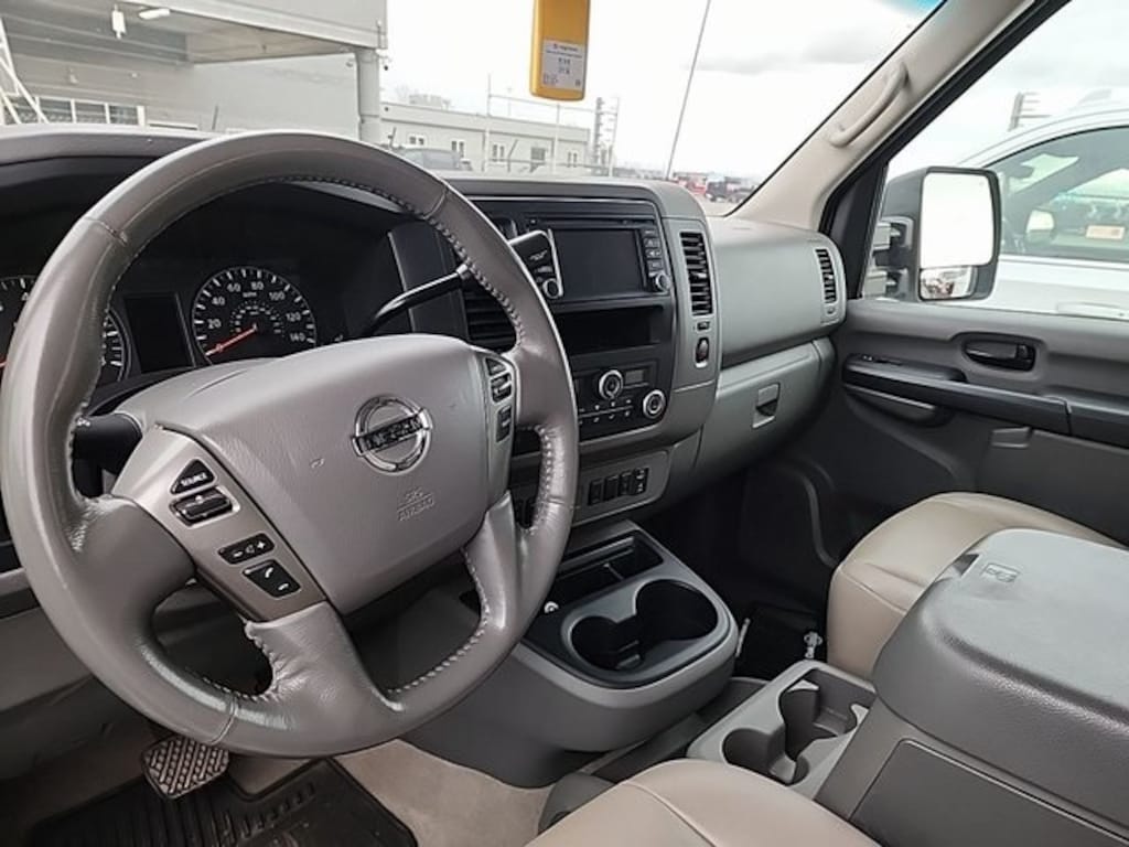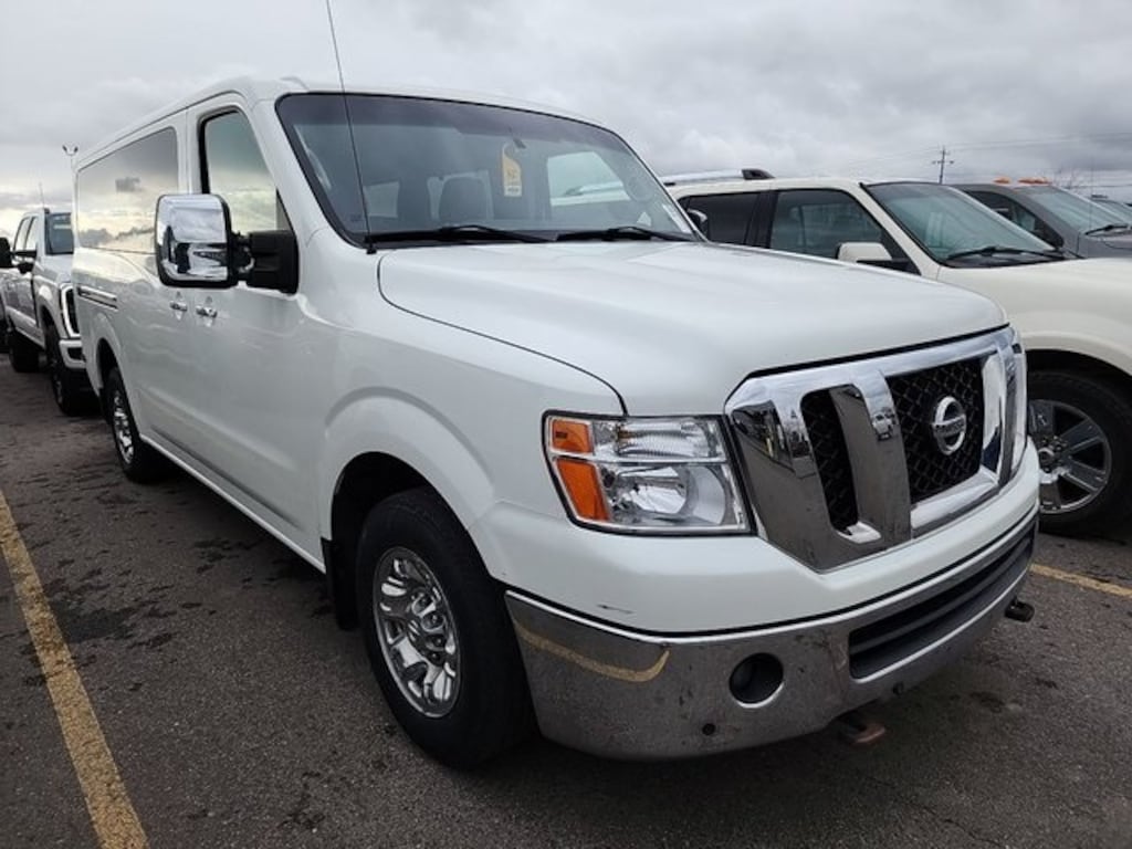 NV Passenger SL, Passenger Van, 3.36 Axle Ratio, 3rd row seats: split-bench, 4-Wheel Disc Brakes, 4th-Row Bench Seat, 6 Speakers, 7.5J x 17" Chrome-Clad Steel Wheels, ABS brakes, Air Conditioning, AM/FM radio: SiriusXM, Auto-dimming Rear-View mirror, Automatic temperature control, Brake assist, Bumpers: chrome, CD player, Compass, Driver door bin, Dual front impact airbags, Dual front side impact airbags, Electronic Stability Control, Exterior Parking Camera Rear, Front anti-roll bar, Front Bucket Seats, Front Center Armrest w/Storage, Front dual zone A/C, Front fog lights, Front reading lights, Front wheel independent suspension, Heated Front Bucket Seats, Heated front seats, Illuminated entry, Leather steering wheel, Leather-Appointed Seat Trim, Low tire pressure warning, Navigation System, Outside temperature display, Overhead airbag, Overhead console, Panic alarm, Passenger door bin, Power door mirrors, Power driver seat, Power steering, Power windows, Radio data system, Radio: NissanConnect w/Navigation & Mobile Apps, Rear air conditioning, Rear anti-roll bar, Rear reading lights, Rear window defroster, Remote keyless entry, Security system, Speed control, Speed-sensing steering, Speed-Sensitive Wipers, Steering wheel mounted audio controls, Tachometer, Tilt steering wheel, Traction control, Trip computer, Variably intermittent wipers, Voltmeter, NV Passenger SL, Passenger Van. Recent Arrival! CARFAX One-Owner. Clean CARFAX.