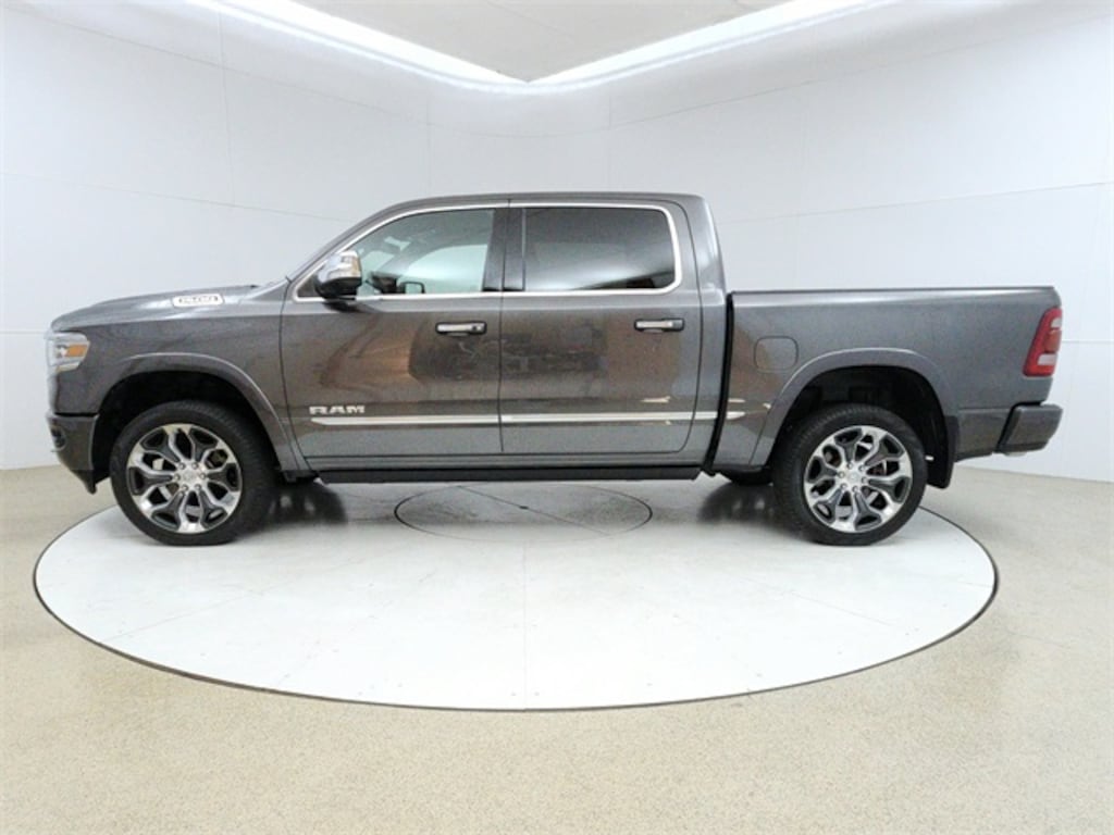 Clean Carfax, 1500 Limited, HEMI 5.7L V8 Multi Displacement VVT, 4WD, Granite Crystal Metallic Clearcoat, 4 Adjustable Cargo Tie-Down Hooks, Adaptive Cruise Control w/Stop & Go, Advanced Brake Assist, Bed Utility Group, Body Color Bumper Group, Body Color Front Bumper, Body Color Rear Bumper w/Step Pads, Dome Dual LED Reading Lamp, Dual-Pane Panoramic Sunroof, Full Speed Forward Collision Warning Plus, GPS Navigation, harman/kardon 19 Speaker Premium Sound, Heated front seats, Heated rear seats, Lane Keep Assist, LED Dome/Reading Lamp, Limited Level 1 Equipment Group, Navigation System, Parallel & Perp Park Assist w/Stop, Pick-Up Box Lighting, Quick Order Package 25M Limited, Ventilated front seats, Wheels: 22" x 9" Polish/Painted w/Inserts, 1-Yr SiriusXM Guardian Trial, 10 Speakers, 12" Touchscreen Display, 33 Gallon Fuel Tank, 4-Wheel Disc Brakes, 48V Belt Starter Generator, ABS brakes, Adjustable pedals, Air Conditioning, Alloy wheels, AM/FM radio: SiriusXM with 360L, Anti-Spin Differential Rear Axle, Apple CarPlay, Apple CarPlay/Android Auto, Audio memory, Auto High-beam Headlights, Auto-dimming door mirrors, Auto-dimming Rear-View mirror, Auto-leveling suspension, Automatic temperature control, Bodyside moldings, Brake assist, Bumpers: chrome, Compass, Delay-off headlights, Disassociated Touchscreen Display, Driver door bin, Driver vanity mirror, Dual front impact airbags, Dual front side impact airbags, Electronic Stability Control, Emergency communication system: SiriusXM Guardian, Front anti-roll bar, Front Bucket Seats, Front Center Armrest w/Storage, Front dual zone A/C, Front fog lights, Front reading lights, Front wheel independent suspension, Fully automatic headlights, Garage door transmitter, Genuine wood console insert, Genuine wood dashboard insert, Genuine wood door panel insert, Google Android Auto, GPS Antenna Input, HD Radio, Heated door mirrors, Heated steering wheel, Illuminated entry, Integrated Center Stack Radio, Leather steering wheel, Low tire pressure warning, Memory seat, Occupant sensing airbag, Outside temperature display, Overhead airbag, Overhead console, Panic alarm, ParkView Rear Back-Up Camera, Passenger door bin, Passenger vanity mirror, Pedal memory, Power door mirrors, Power driver seat, Power passenger seat, Power steering, Power windows, Premium Leather Trimmed Bucket Seats, Radio data system, Radio: Uconnect 12 w/Navigation, Rain sensing wipers, Rear anti-roll bar, Rear seat center armrest, Rear step bumper, Rear window defroster, Remote CD player, Remote keyless entry, Security system, SiriusXM Satellite Radio, SiriusXM Traffic Plus, SiriusXM Travel Link, SiriusXM w/360L, Speed control, Split folding rear seat, Steering wheel mounted audio controls, Tachometer, Telescoping steering wheel, Tilt steering wheel, Traction control, Trailer Brake Control, Trip computer, Turn signal indicator mirrors, USB Host Flip, Variably intermittent wipers, Ventilated Rear Seats, Voltmeter, Wheels: 20" x 9" Polished w/Inserts, Must See, 3 Month 3,000 Mile Powertrain Warranty On Every Vehicle, 1500 Limited, HEMI 5.7L V8 Multi Displacement VVT, 4WD, Granite Crystal Metallic Clearcoat, 4 Adjustable Cargo Tie-Down Hooks, Adaptive Cruise Control w/Stop & Go, Advanced Brake Assist, Bed Utility Group, Body Color Bumper Group, Body Color Front Bumper, Body Color Rear Bumper w/Step Pads, Dome Dual LED Reading Lamp, Dual-Pane Panoramic Sunroof, Full Speed Forward Collision Warning Plus, GPS Navigation, harman/kardon 19 Speaker Premium Sound, Heated front seats, Heated rear seats, Lane Keep Assist, LED Dome/Reading Lamp, Limited Level 1 Equipment Group, Navigation System, Parallel & Perp Park Assist w/Stop, Pick-Up Box Lighting, Quick Order Package 25M Limited, Ventilated front seats, Wheels: 22" x 9" Polish/Painted w/Inserts. Clean CARFAX.