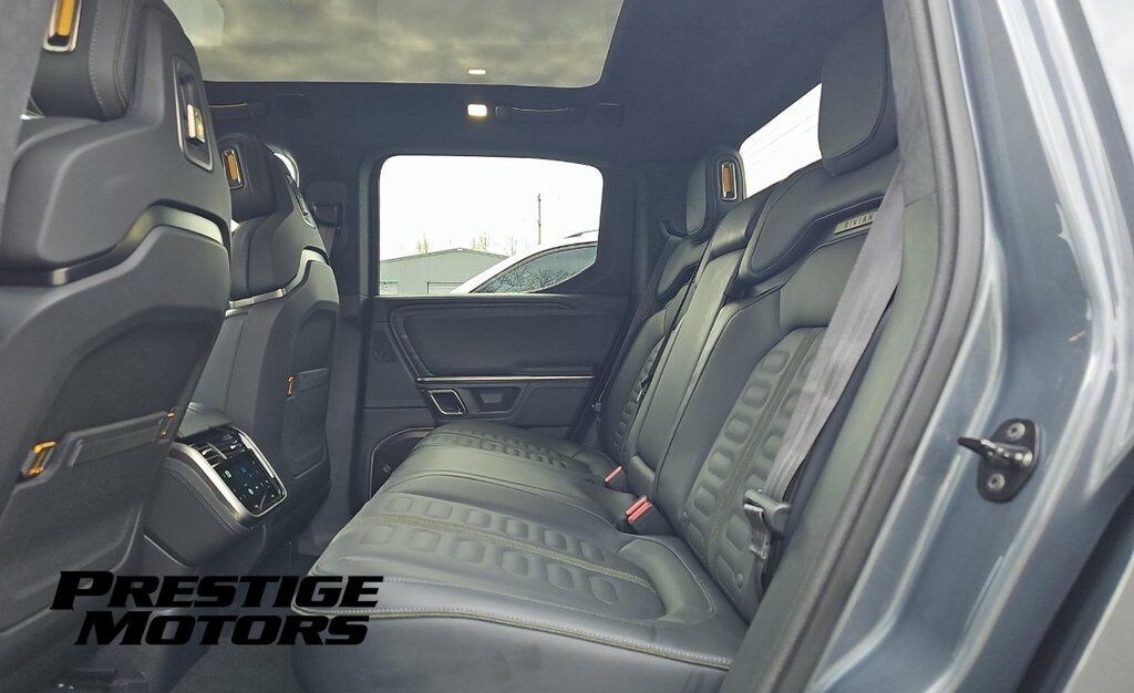 Must See, 1 Owner Vehicle, R1T Adventure, 4D Crew Cab, AWD, All-Terrain Upgrade, 17 Speakers, 4-Wheel Disc Brakes, ABS brakes, Adaptive suspension, Air Conditioning, Alloy wheels, Audio memory, Auto High-beam Headlights, Auto tilt-away steering wheel, Auto-dimming door mirrors, Auto-dimming Rear-View mirror, Auto-leveling suspension, Automatic temperature control, Brake assist, Delay-off headlights, Driver door bin, Driver vanity mirror, Dual front impact airbags, Dual front side impact airbags, Electronic Stability Control, Emergency communication system, Exterior Parking Camera Rear, Four wheel independent suspension, Front anti-roll bar, Front Bucket Seats, Front Center Armrest, Front dual zone A/C, Front fog lights, Front reading lights, Fully automatic headlights, Heated & Ventilated Front Bucket Seats, Heated door mirrors, Heated front seats, Heated steering wheel, Illuminated entry, Knee airbag, Low tire pressure warning, Memory seat, Navigation System, Occupant sensing airbag, Outside temperature display, Overhead airbag, Panic alarm, Passenger door bin, Passenger vanity mirror, Perf Vegan Leather Seat Trim w/Patterned Stitching, Power door mirrors, Power driver seat, Power passenger seat, Power steering, Power windows, Radio: New Rivian Elevation Audio, Rain sensing wipers, Rear air conditioning, Rear anti-roll bar, Rear audio controls, Rear dual zone A/C, Rear fog lights, Rear reading lights, Rear seat center armrest, Rear window defroster, Remote keyless entry, Security system, Speed control, Speed-sensing steering, Split folding rear seat, Spoiler, Steering wheel memory, Steering wheel mounted audio controls, Telescoping steering wheel, Tilt steering wheel, Traction control, Trip computer, Turn signal indicator mirrors, Variably intermittent wipers, Ventilated front seats, Wheels: 21" Road Machined Aluminum, R1T Adventure, 4D Crew Cab, AWD, All-Terrain Upgrade. CARFAX One-Owner. Recent Arrival!