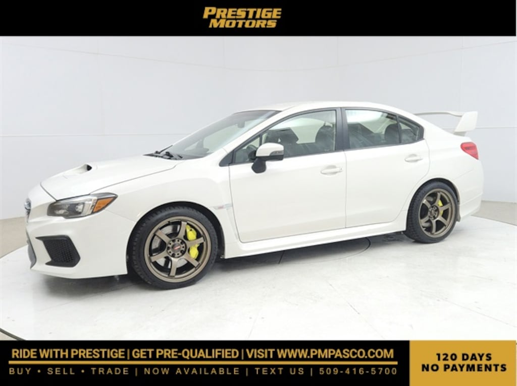 WRX STi, 4D Sedan, AWD, Alloy Wheel Locks, Auto-Dimming Mirror w/Compass & HomeLink, Cargo Tray, Center Armrest Extension - Black, Popular Package #1, Rear Bumper Applique, Standard Model, STI Shift Knob, STI Short Throw Shifter (STI), STI Short Throw Shifter Package, 19" Alloy Wheels, 4-Wheel Disc Brakes, 6 Speakers, ABS brakes, Air Conditioning, Alcantara Ultrasuede Upholstery, Alloy wheels, AM/FM radio: SiriusXM, Automatic temperature control, Brake assist, Bumpers: body-color, CD player, Delay-off headlights, Driver door bin, Driver vanity mirror, Dual front impact airbags, Dual front side impact airbags, Electronic Stability Control, Exterior Parking Camera Rear, Four wheel independent suspension, Front anti-roll bar, Front Bucket Seats, Front Center Armrest, Front dual zone A/C, Front fog lights, Front reading lights, Fully automatic headlights, Heated door mirrors, Heated front seats, Illuminated entry, Knee airbag, Leather Shift Knob, Leather steering wheel, Low tire pressure warning, Occupant sensing airbag, Outside temperature display, Overhead airbag, Panic alarm, Passenger door bin, Passenger vanity mirror, Performance Design Heated Front Bucket Seats, Power door mirrors, Power steering, Power windows, Radio data system, Radio: Subaru STARLINK 7.0" Multimedia Plus System, Rear anti-roll bar, Rear seat center armrest, Rear window defroster, Remote keyless entry, Security system, Speed control, Speed-sensing steering, Split folding rear seat, Spoiler, Sport steering wheel, STARLINK/Apple CarPlay/Android Auto, Steering wheel mounted audio controls, Tachometer, Telescoping steering wheel, Tilt steering wheel, Traction control, Trip computer, Turn signal indicator mirrors, Variably intermittent wipers, WRX STi, 4D Sedan, AWD, Alloy Wheel Locks, Auto-Dimming Mirror w/Compass & HomeLink, Cargo Tray, Center Armrest Extension - Black, Popular Package #1, Rear Bumper Applique, Standard Model, STI Shift Knob, STI Short Throw Shifter (STI), STI Short Throw Shifter Package.